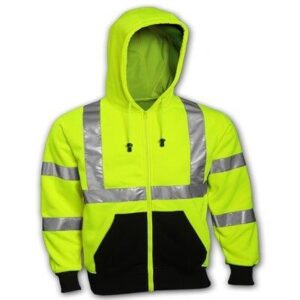 Hi-Viz Sweatshrit, Zip Front, ANSI/ISEA 107 Class 3, Yellow/Green, XXXL