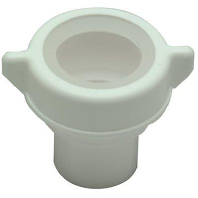 Master Plumber, White, Plastic, Drain Reducing Adapter, Connects 1-1/2″ O.D. Tube To 1-1/4″ O.D. Tube, 1-1/4″ End Inserts Into Wall Or Floor Drain Pipe, 1-1/2″ End Fits Standard Brass Or Plastic Tubular Size, Includes Nut & Washers, Carded.