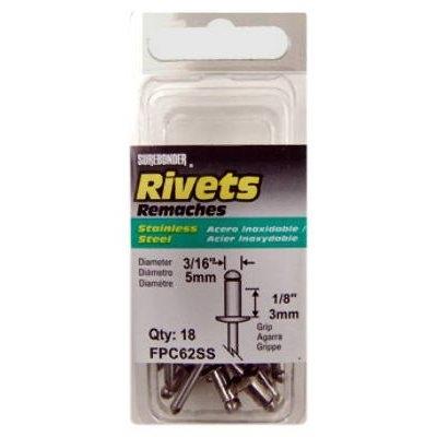Surebonder, 18 Pack, Short Stainless Steel Rivet, 3/16″ Diameter, Grip Range: .063″- .125″, Stainless Steel Mandrel.