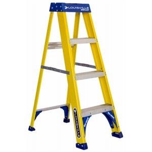 4-Ft., Fiberglass, Type I, Stepladder, Type I, 250-Lb. Duty Rating, Molded Top With Tool Slots, Slip Resistant Feet, Pinch Resistant Spreader Braces, Reinforced Bottom Brace, Meets OSHA, CSA & ANSI Standards, Non-Conductive Fiberglass, Double-Rivet Step Construction.