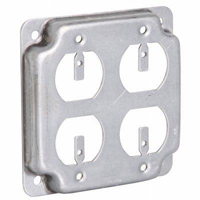 4″ Flat Corner Square Double Duplex Receptacle, 1/2″ Rise Box Cover, Steel, Exposed Work, 7-1/3 CUIN.