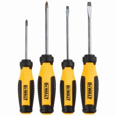 This versatile 4 Piece Screwdriver Set includes a variety of handle sizes and tip types to help you complete a range of fastening projects. The durable steel bars are chrome-plated for corrosion resistance and long-term performance. To help reduce stripping and cam-out, these Screwdrivers feature magnetized and sand-blasted tips that offer a tight fit on the screw. The soft, bi-material handle offers a low-strain grip for comfort and high torque.