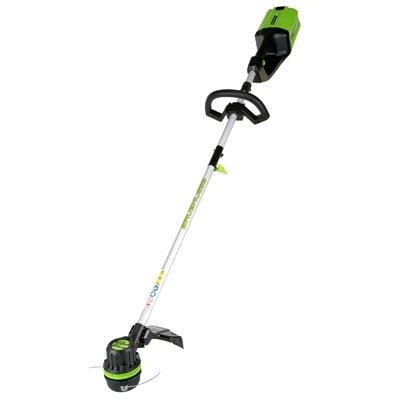Greenworks, 80v, 16″, cordless string trimmer, with 2 ah battery & 2 ah battery charger, 30 minute charge time, brushless motor, variable speed trigger, .080″ dual line, bump feed head, 3 year limited tool/battery warranty.