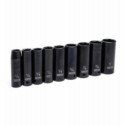 Master Mechanic, 9 Piece, Deep Impact Socket Set, SAE. Set contains 1/2″ Drive Deep sockets: 1/2, 9/16, 5/8, 11/16, 3/4, 13/16, 7/8, 15/16, 1″