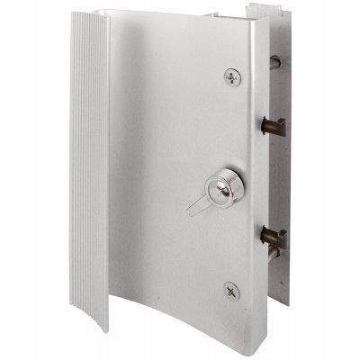 This unique patio door handle is used by Ador/HiLite doors. It has mill finish extruded inside and outside 6 in. handles. It is non-handed and will work on either right or left-handed doors. The spring-loaded hook pins twist in tandem to lock into the door jamb. No keeper required. Unit is non-keyed. Mounting holes are 3-7/8 in. on center. Minimum door width of 7/8 in. and maximum width of 1-1/8 in.