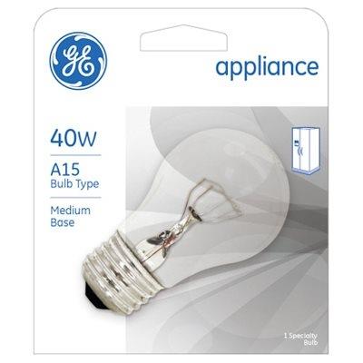This 40 watt incandescent bulb is clear and has a medium base. This bulb has a 1,500-Hour rated life and an overall length of 3-1/2″. This bulb is designated for appliance use.
