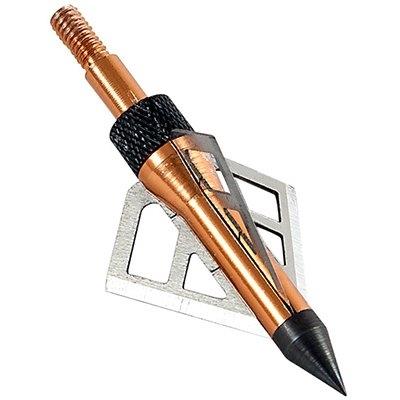 3 count, copper, lighting xst broadhead, 100 grain, 1-1/16″ cutting diameter, .027″ stainless steel blade thickness, swept wing blade design for superior flight, hardened steel tip.
