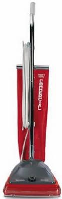 Sanitaire Bagged Upright Commercial Vacuum, High Efficiency 7A Long Life Motor, Shake Out Bag Assembly, 50′ Cord, 12″ Cleaning Path, Vibra Groomer II Brush Roll & 6 Position Height Adjustment, For Replacement Outer Bag Use #54582-1, For Belt Use #52100C, TV #285-726.