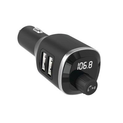 Bluetooth hands free cell phone kit, make hands free calls from your bluetooth enabled smartphone, led displays the exact frequency the transmitter is tuned to for easy syncing with your vehicles stereo system, wirelessly stream music from the digital fm transmitter to your vehicles fm stereo, charge your devices with the dual 2.4 + 1a usb ports on the 12v car charger & change music tracks forward, back play, pause answer & hang up the phone or voice controls like siri & google voice.