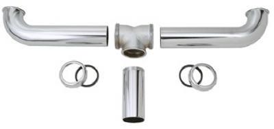 Master plumber, 22 gauge, 1-1/2″ o.d. Tube slip joint x 16″, chrome plated brass, 2 bowl center outlet drain, for kitchen sink, includes nuts & washers.