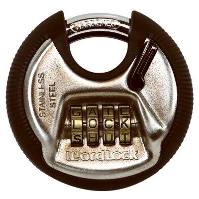 Wordlock, resettable combination discus lock with 4 dials, high security protected shackle, rubber bumper, easier than ever to remember your combination, 10,000 possible word or letter combinations, easy to set & reset your own combination, solid stainless steel, rust resistant body, deadbolt locking mechanism, shielded design resistant to bolt cutters, copper plated, solid zinc components to prevent corrosion, hardened steel shackle for improved cut resistance.