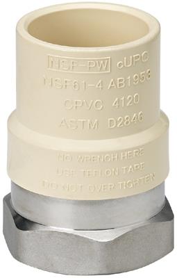 1/2″, female iron pipe thread, stainless steel, cpvc transition adapter, meets California ab1953 no lead requirement.