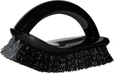 Curved Scrub Iron Brush, Long Lasting Fibers For Deep Cleaning, Extra Long Poly Fibers Reach Deep Into Crevices & Along Irregular Surfaces, Anti-Slip Grip, Iron Shaped To Raise Hand Above Cleaning Surface.