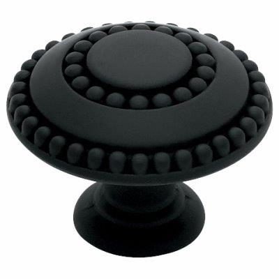1-3/8″ double beaded matte black knob, timeless style and classic round knob shape with beaded design, in zinc die cast material, includes 2 different screw lengths for convenience, poly bagged.