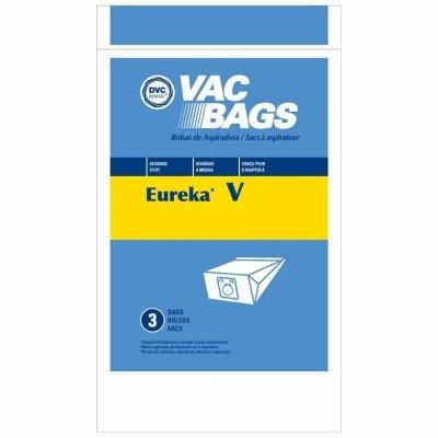 DVC Eureka, 3 pack, v vacuum bag, allergen filter traps 99 percent of dust, pollen, pet dander & mold down to 5 microns, fits power team, powerline, world vac, canister vacuum cleaners.