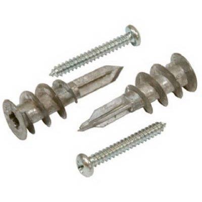 51 piece, zinc, ez anchor kit, includes: 25 each: #8 zinc ez anchor, 25 each: #8 x 1-1/4″ pan head Philips sheet metal screw, steel/zinc, & one #2 Philips bit.