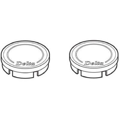 Delta, clear/chrome replacement button set, includes clear hot & cold inserts, chrome red & blue indicators, for old style knob handles (pair), genuine Delta manufactured, 1-5/16″ diameter, instructions on package.
