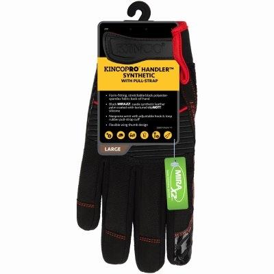 Kincopro™ handler™ black polyester-spandex fabric back, black mirax2™ suede synthetic leather palm coated with textured slipnot!® dotted palm, neoprene wrist closure with adjustable hook & loop rubber pull-strap cuff, wing thumb design, x-large