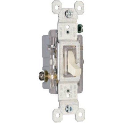 15a, 120v, light almond, grounded, illuminated single pole toggle switch, ul listed, smooth quiet action, side & speed wire, high impact resistant construction extra long strap.