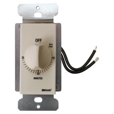 59713 In Wall Switch Countdown Timer, 15-Minute, Gray Just set it and forget it! Install this unit in place of existing wall switches to bring ease to your life. It can automatically turn off bathroom fans, lights and more. Your possibilities are endless. The unit is easy to install in place of existing wall switch and fits standard and decorator switch plates, both single or multiple gang boxes. Automatically turns off after selected time to reduce energy costs with a max of 30 minutes. It is compatible with compact fluorescent bulbs. This unit is rated at 125Volt 60Hz, 20AMP 2400Watt Resistive 8AMP / 1000Watt Tungsten 5AMP / 625VA Fluorescent 15FLA, 90LRA