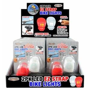 2 pack, led ez strap bike lights 3 flashing modes, on, flashing, slow flashing, many uses, bike safety, stroller safety, finger light, strap to anything.