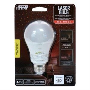 Feit, 4.7w, red laser, a19, led bulb, medium e26 base, 450 lumens, 3,000 kelvin color temperature, non-dimmable. 10,000 rated hours, dual modes, it can act as a green laser projector or a bright white general lighting led bulb, great for parties, children’s rooms, dorm rooms & many more.
