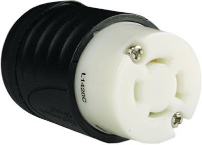 Locking Connector, 20-Amp, 125/250-Volt, Black/White