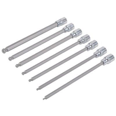 Master Mechanic, 7 Piece, Metric, Long Ball End, Hex Bit, 3/8″ Drive, Socket Set, Includes Sizes: 3 mm, 4 mm, 5 mm ,6 mm, 7 mm, 8 mm,10 mm, Chrome Vanadium Steel Sockets & S2 Bits, Ball Head Design Allows Turning Hard To Reach Fasteners From Up To A 30 Degree Angle.