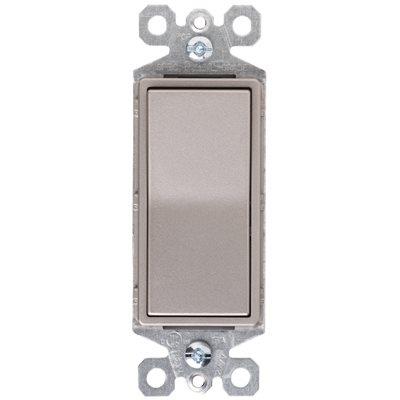 15A, 120/277V, Nickel Finish, Grounded, Premium Decorator Single Pole Switch, UL, Smooth Quiet Paddle Action, Smooth Quiet Paddle Action, Designer Style Satin Finish Rocker, Window Box.