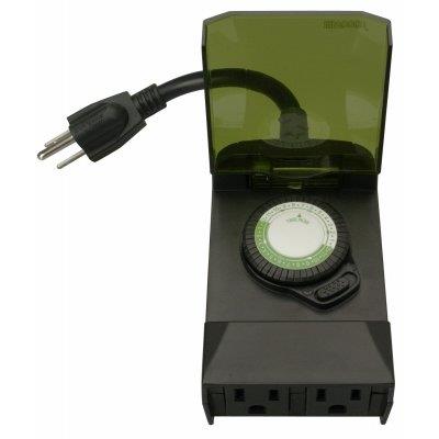 Woods, 2 Outlet, Outdoor 24 Hour Mechanical Outlet Programmable Timer, Controls Up To 1/2 HP, Settings Repeat Daily Up To 24 Settings, Includes Override Switch, Great For Pond Pumps & Holiday Lighting, Never Lose Pins Cannot Be Removed Or Lost.
