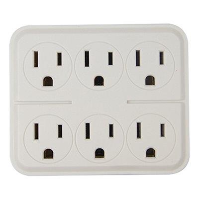 Master Electrician, White, 6 Outlet Tap, Safely Converts A Standard Wall Outlet Into Either 3 Or 6 Outlets, ETL Approved.