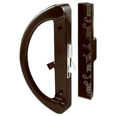 Patio Sliding Door Handle Set, Diecast Painted Black, 4-15/16″ Hole Center to Center. Hook Latch, Steel Keeper. Surface Mounted.