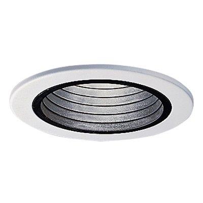 4″ black plastic step baffle with white metal trim ring. comes with friction clips to secure to housing.