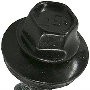Powerpro, 250 piece, 10 x 1″, black, wb metal to wood self-drilling roofing screws contractor pack, designed to fasten steel roofing to wood purlins used in post frame construction & plywood or osb used in residential construction, produced with dura seal coating with enhanced corrosion resistance over painted heads, 2.5 mils of powder with chromate sealer, hwh with v-neck design, adds strength & prevents heads from popping, edmo rubber is vulcanized to a steel washer to form an excellent seal even when driven at an angle, micro-bit point reduces metal shavings that can embed themselves in the rubber washer, starts fast finishes straight, includes pro-stick bit, 40 year warranty.