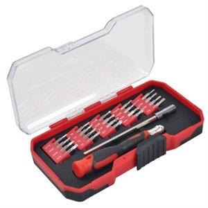 22 piece, precision multi bit screwdriver set, 1 precision screwdriver, 1 extension bar, 20 precision bits, nickel plated cr-v bits, slotted 1/16″, 5/64″, 3/32″, 1/8″, phillips #000, #00, #0, #1, pozi-drive #000, #00, #0, #1, star t6, t7, t8, t9, hex 1/16″, 5/64″, 3/32″, 1/8″.