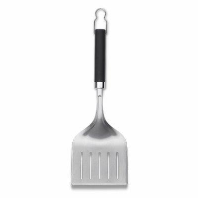 Weber, stainless steel premium spatula, wide spatula head for lifting fish & other large items, soft touch handle with a comfortable non-slip grip, angled neck to keep your hands & arms safe & away from heat.