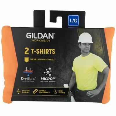 2 pack, adult, large, safety orange, short sleeve, pocket tee shirt, 100% cotton preshrunk jersey knit, double needle 7/8″ collar, taped neck & shoulders, double needle left chest 5 point pocket, double needle sleeve & bottom hem.