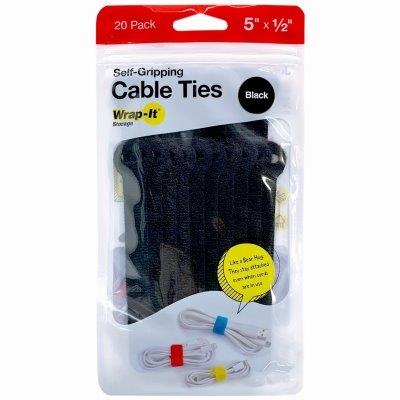 Self-Gripping Cable Ties, Reusable, Black, 1/2 x 5 In., 20-Pk.