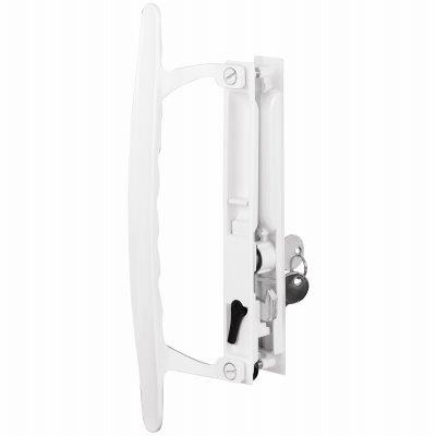 This sliding patio door handle set is constructed of diecast and features a keyed exterior pull. This handle set is a flush mounted, hook style handle set and it is non-handed allowing it to be used on both left and right-handed patio sliding doors. This handle set fits all popular flush lock punch-outs using a 6-5/8 in. hole center spacing, and it is used to replace damaged or missing flush mounted, hook style handle sets on sliding glass doors ranging from 1 in. to 1-1/8 in. thick door frames. This item is packaged complete with a keyed cylinder lock, 2 keys and 4 different hook lengths. Installation instructions and all fasteners necessary for the installation of this handle set are included in packaging, including the 2-11/16 in. keeper that mounts on the jamb. Product Selection Tip: Besides matching the style and type of locking mechanism, the other main specification to match is the measurement of the mounting hole centers, from center-2-center.