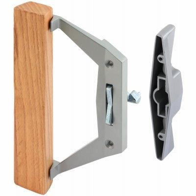 Sliding Patio Door Handle, Gray Diecast with Wood Pull