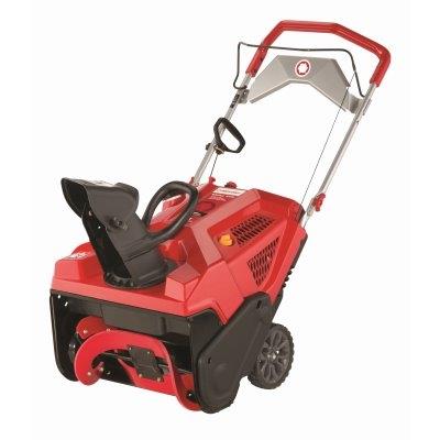 Troy-bilt single-stage, gas snow thrower. Powerful 208cc, 4-cycle, Troy-bilt OHV engine, recoil & push button electric start. 21″ clearing width, 13″ intake height, 180 degree EZ chute rotation, extended life auger, reversible/replaceable scraper blade, rugged 5″ polymer chute, deluxe ergo folding handles, 8″ x 2″ awd tread wheels, 2 qt fuel tank capacity, oil included in carton, fully assembled, 2 year limited warranty.