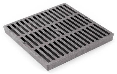 9″ x 9″, black, square grate, made of structural foam polyolefin with uv inhibitors, open surface area is 39.50 sqin with 51.75 gpm, use with the 9″ x 9″ catch basin series, it is rated a class b load, which is recommended for medium duty pneumatic tire traffic, autos & light trucks at speeds less than 20 mph.