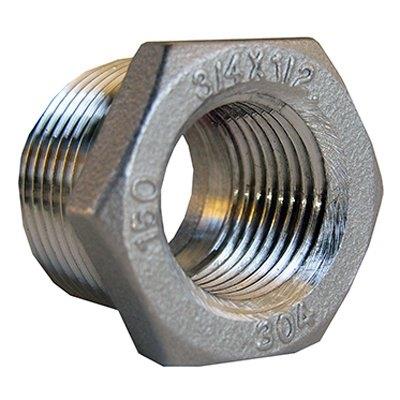 3/4″ x 1/2″, Stainless Steel Reducing Hex Bushing, Type 304, 150 LB Rated Stainless, Lead Free Product, Male x Female Pipe Threads, Carded Clam Shell.