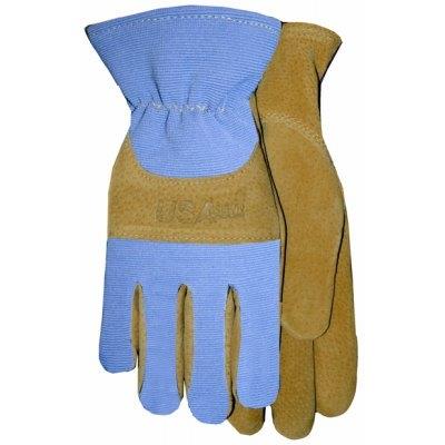Large, Ladies, Suede Pigskin Leather Palm & Knuckle Strap, Periwinkle Spandex Back.