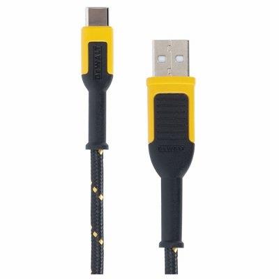Dewalt, 10′, usb-a to usb-c braided cable, reinforced with kevlar fiber, built to withstand everyday wear & tear, single piece strain relief reduces pressure from repeated bending & flexing.