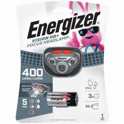 Energizer Vision HD+ Focus LED Headlamp gives you reliable light no matter where your work or adventures take you. This wearable LED light is ready to shine while leaving both hands free, whether you’re taking an early morning jog, going camping, or dealing with an unexpected power outage. Unleash the maximum power of 400 lumens on high mode for 85 meter beam distance, and use the patented Digital Focus technology to narrow the light beam. A convenient Memory Recall feature allows users to quickly access their favorite focus setting the next time the light is activated. Additional modes including low, spot, flood, and red for night vision give you light for any situation. Powered by three AAA alkaline batteries (included), this Energizer headlamp runs for up to 3 hours on high. This hands free light allows you to direct light right where you need it most, and it’s IPX4 water-resistant and impact-resistant up to 1 meter. Count on Energizer to provide reliable light in any situation.
