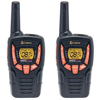 Cobra acxt345, walkie talkies, 25 mile two way radios pair, 2,662 channel combinations, 10 channel weather radio, battery saver circuitry, call alert, roger beep tone, lcd display, keystroke tone signal, belt clip.