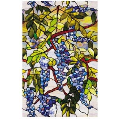 24″ x 36″, wisteria window film, an inexpensive alternative to stained glass, translucent but not transparent, allows light to enter the room, provides privacy, no adhesive necessary, will tile together like wallpaper, top to bottom, left to right, can be easily removed with no adhesive residue after years of installation, easily trimmed to fit, self static adhering, no adhesives.