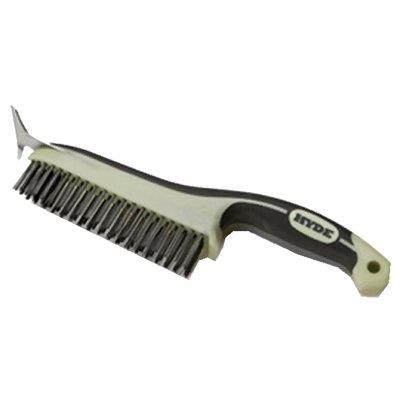 6″, high carbon steel ergo wire brush, with scraper blade, block size 6″ x 1″, overall length 12-1/2″, remove rust & paint, scrub cement, fits in corners, carbon steel blade for scraping, long handle.